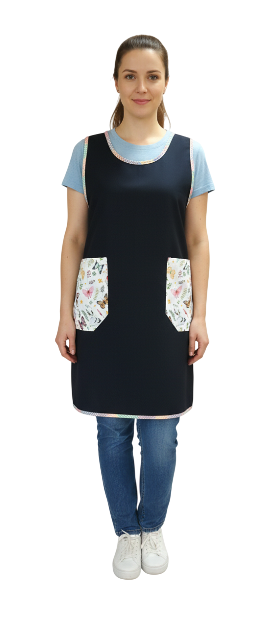 Descubre nuestra exclusiva bata marino con mariposas de colores, diseñada especialmente para educadores que buscan comodidad y estilo en su día a día.