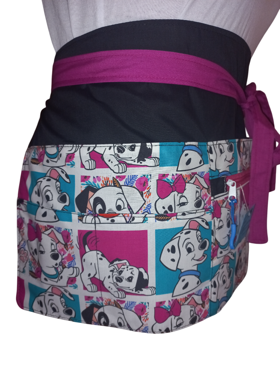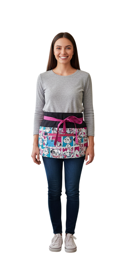 Diseñado especialmente para maestras de educación infantil y primaria, este delantal corto con el encantador diseño de Dálmatas combina funcionalidad y estilo.
